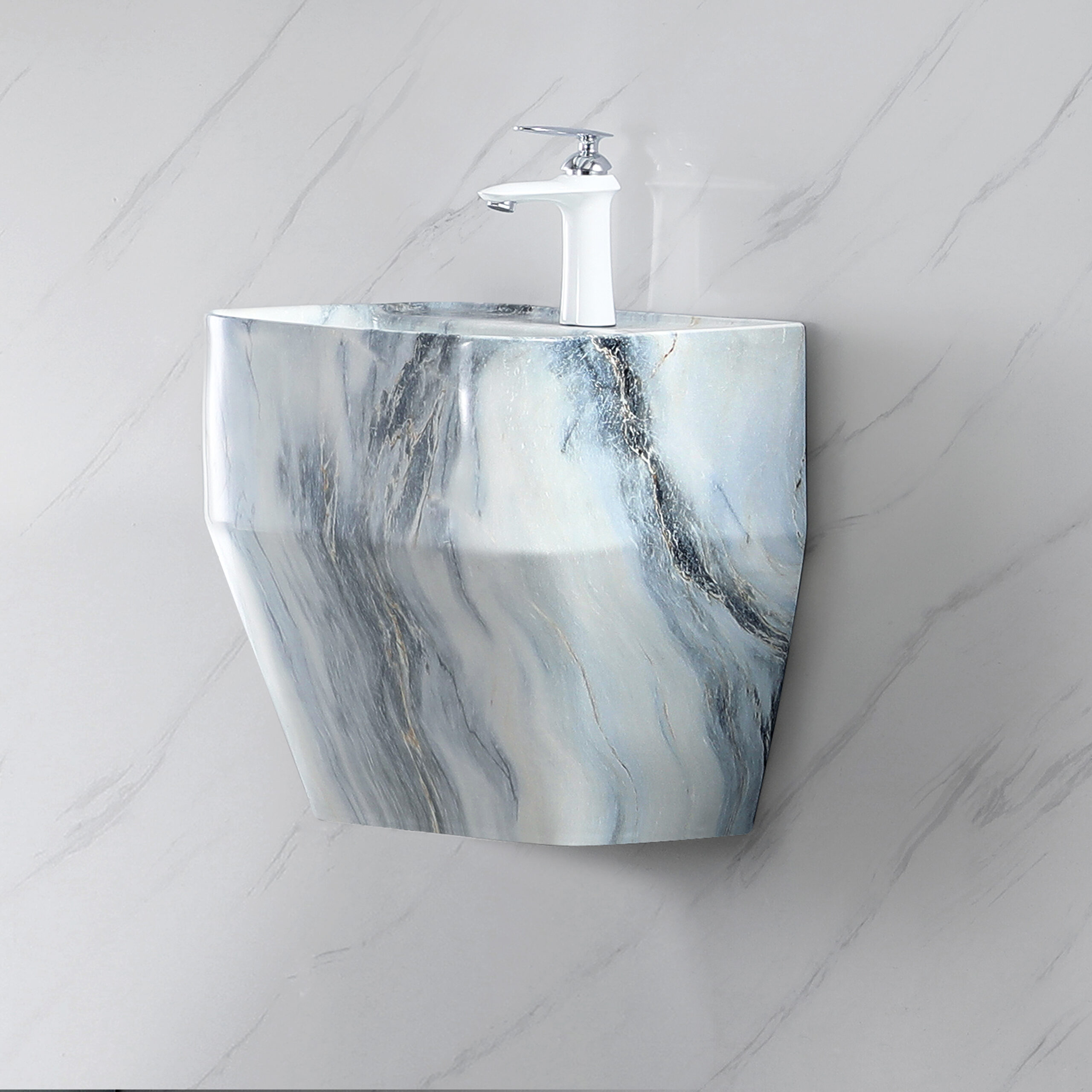 Marble Style Sanitary Wares Bathroom Furniture Unit Blue Colored Imitation Natural Stone Vessel Basin Bowl Bathroom Single Sinks