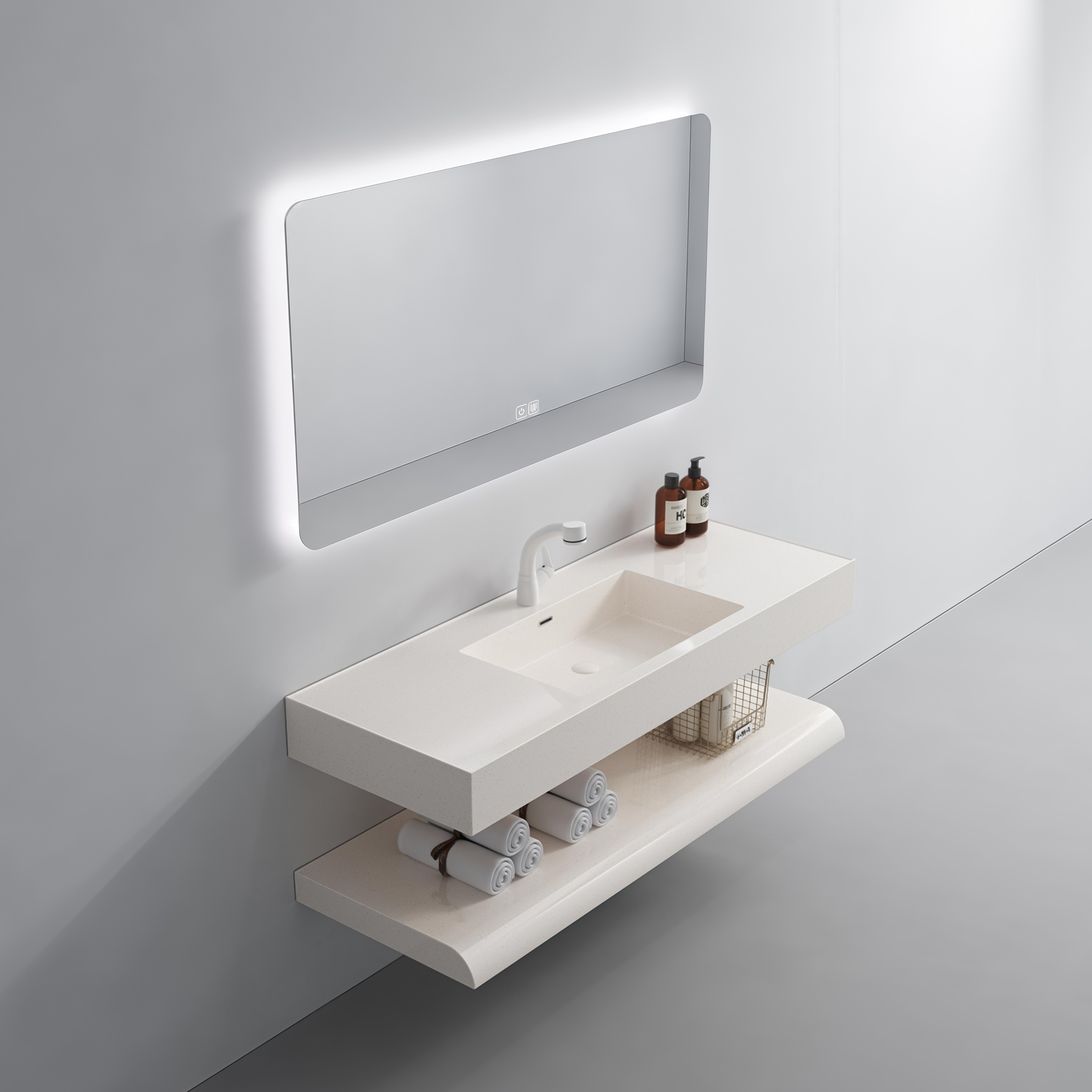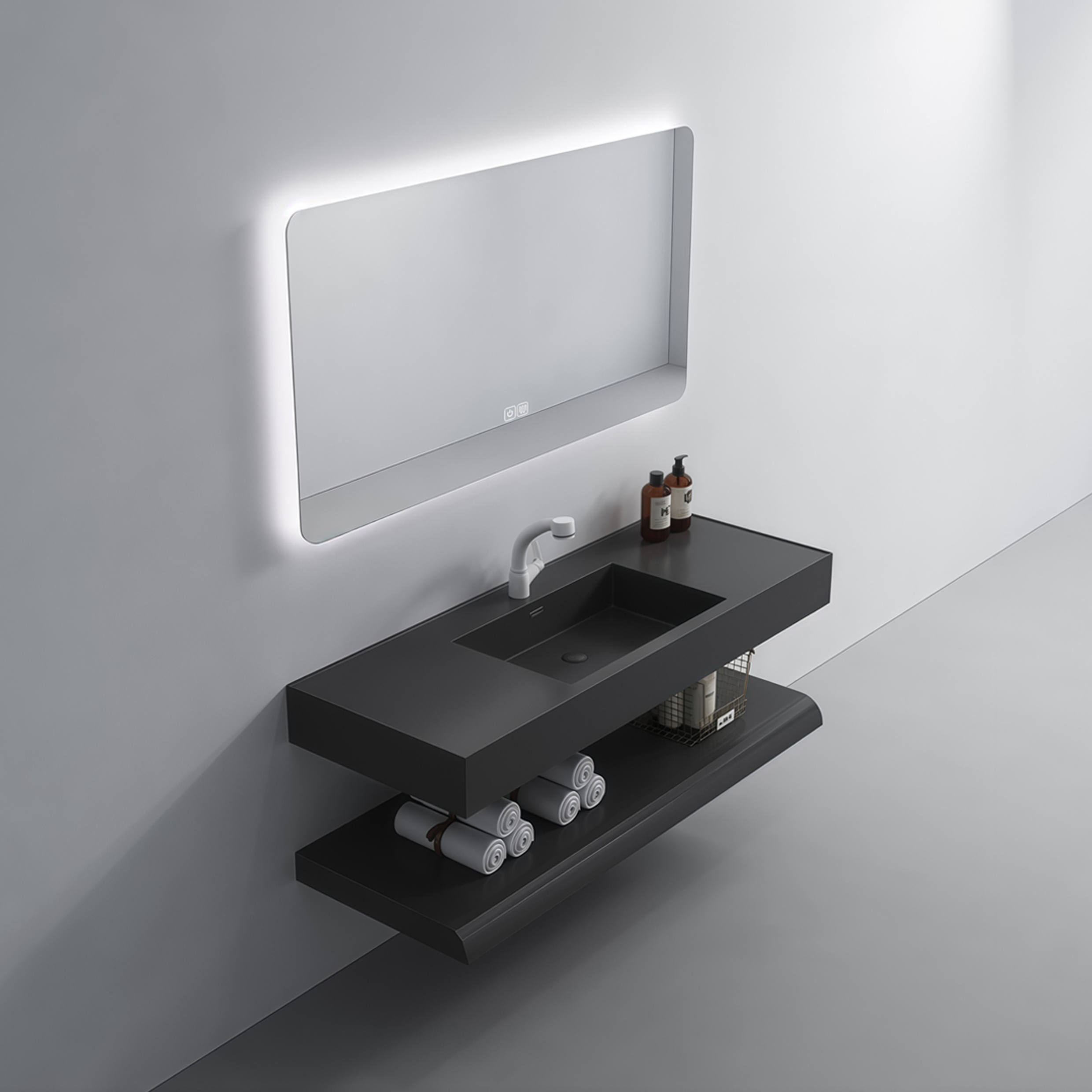 Matt Black Colored Rock Slab Basin Double Layer Sink Modern Hotel Project Bathroom Vanity Washbasin Cabinet Customized Size Color