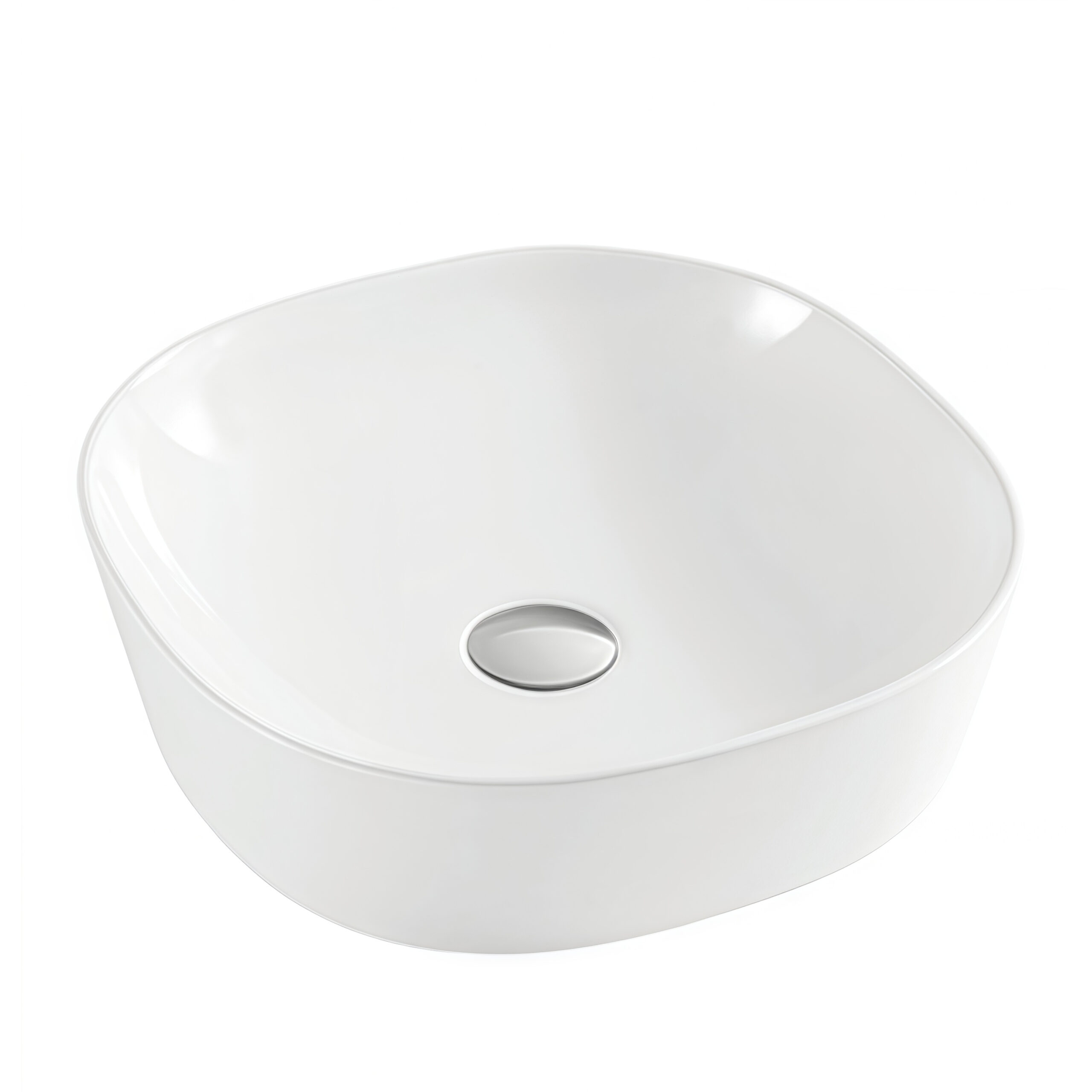 Minimalism High Glossy Ceramic Vessel Sink White Small Size Rounded Square Countertop Balcony Bathroom Basin Sink