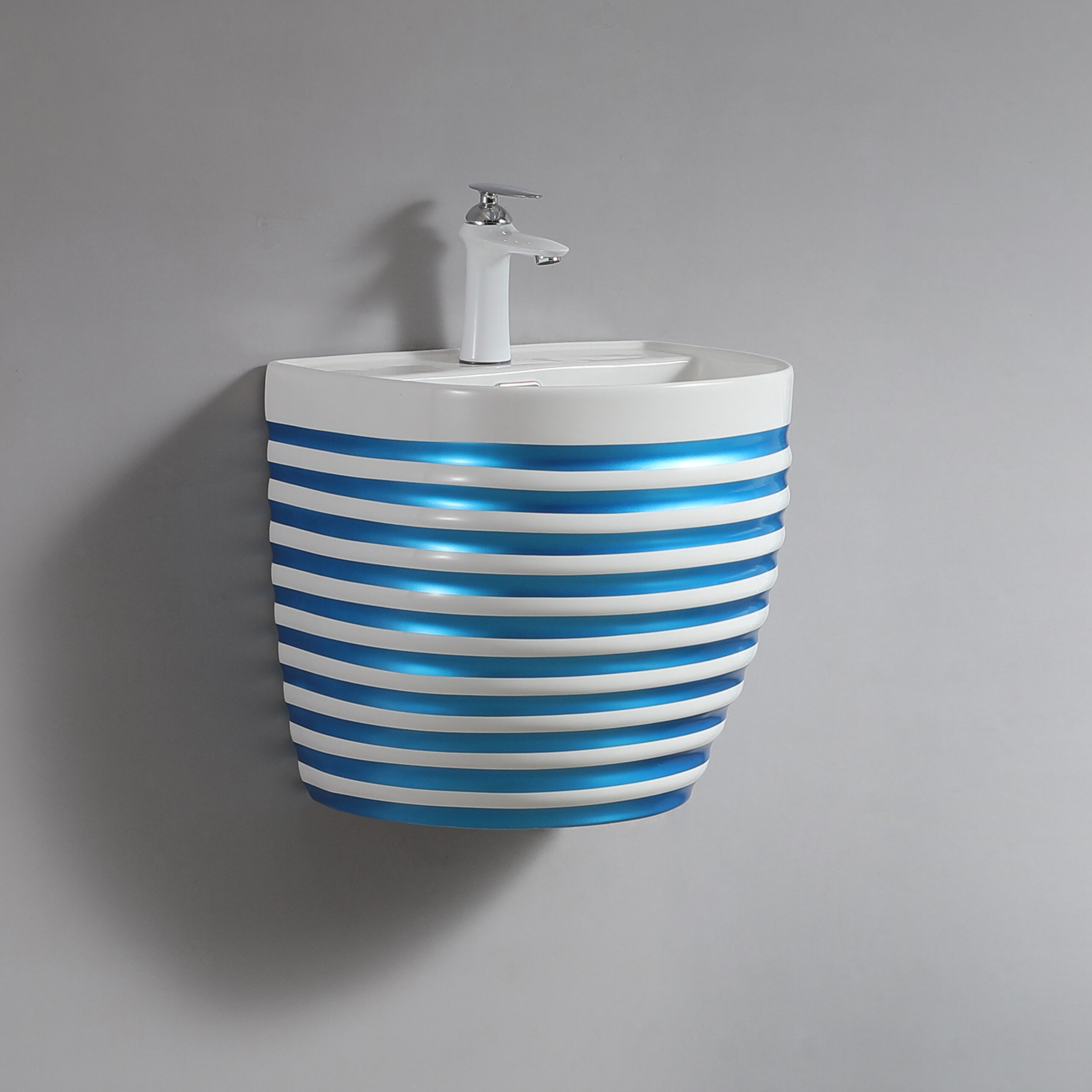 Modern Design Shinning Blue Striated Wall Hung Basin Lavabo Wall Mount Bathroom Sink Decorated Ceramic Hand Wash Basins