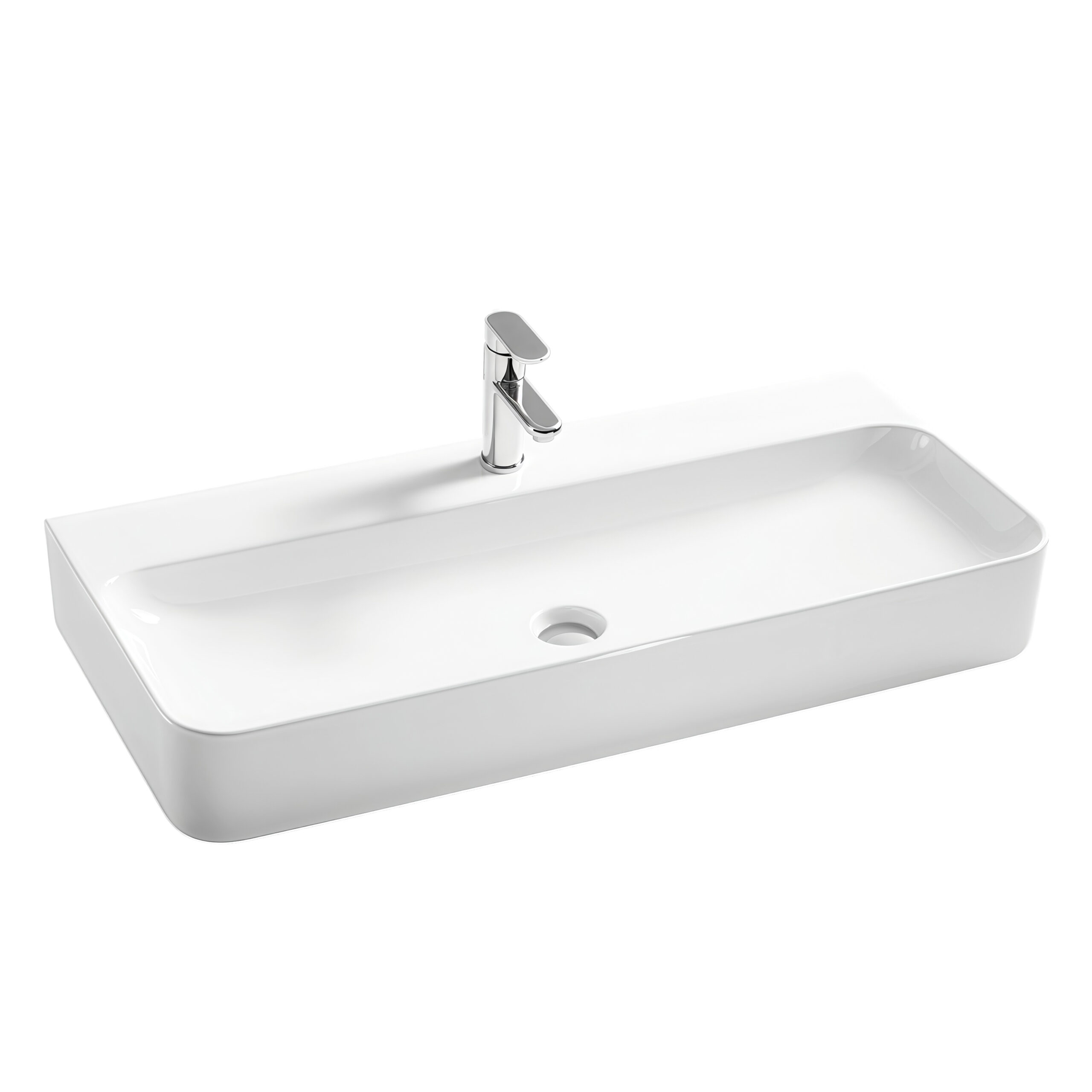 Wholesale European style white countertop rectangular ceramic vessel sink above counter art basins wash basin