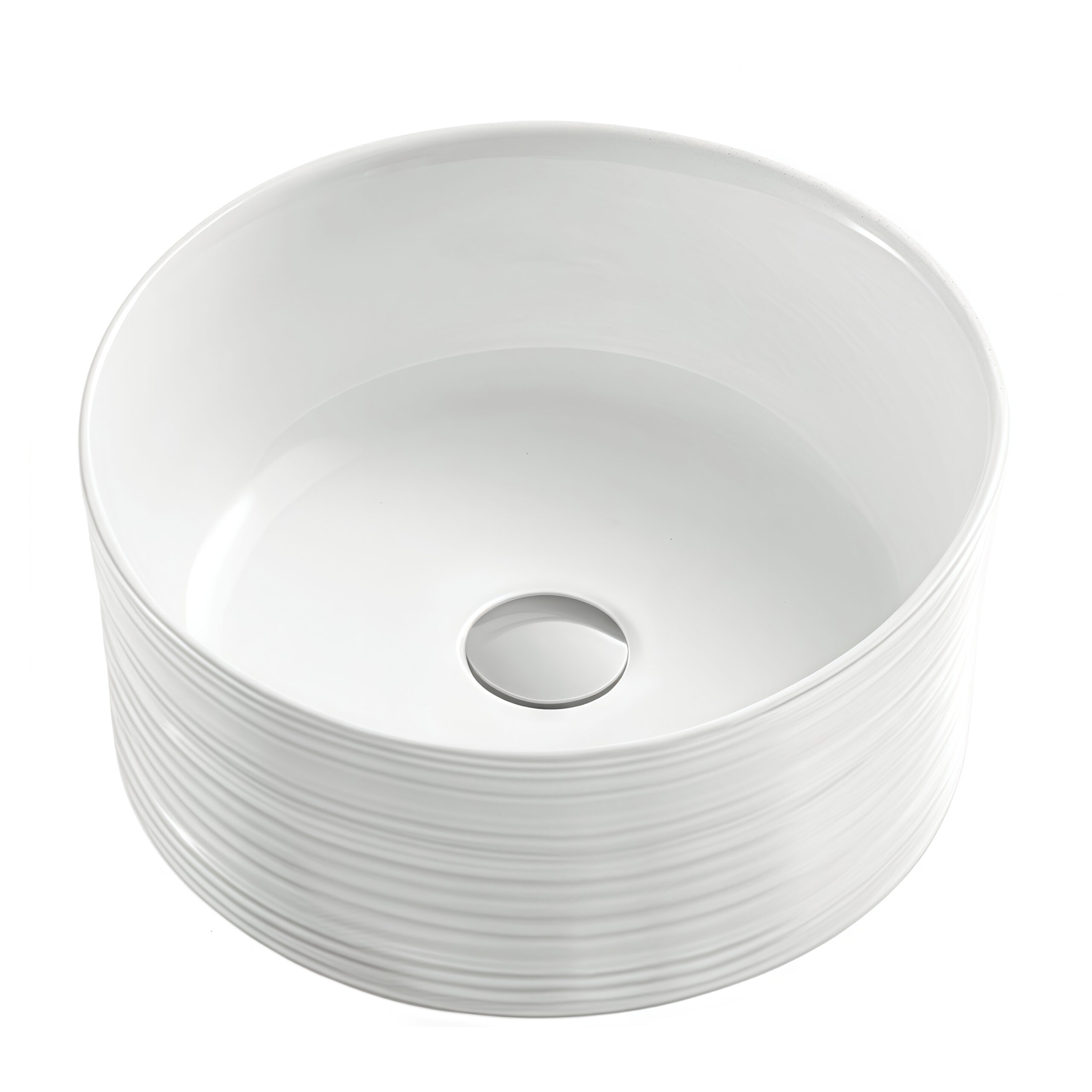 New Arrival Artistical Fluted Surface Handmade Basin White Glossy Ceramic Deep Vessel Sink Countertop Lavabo Bathroom Wash Basin