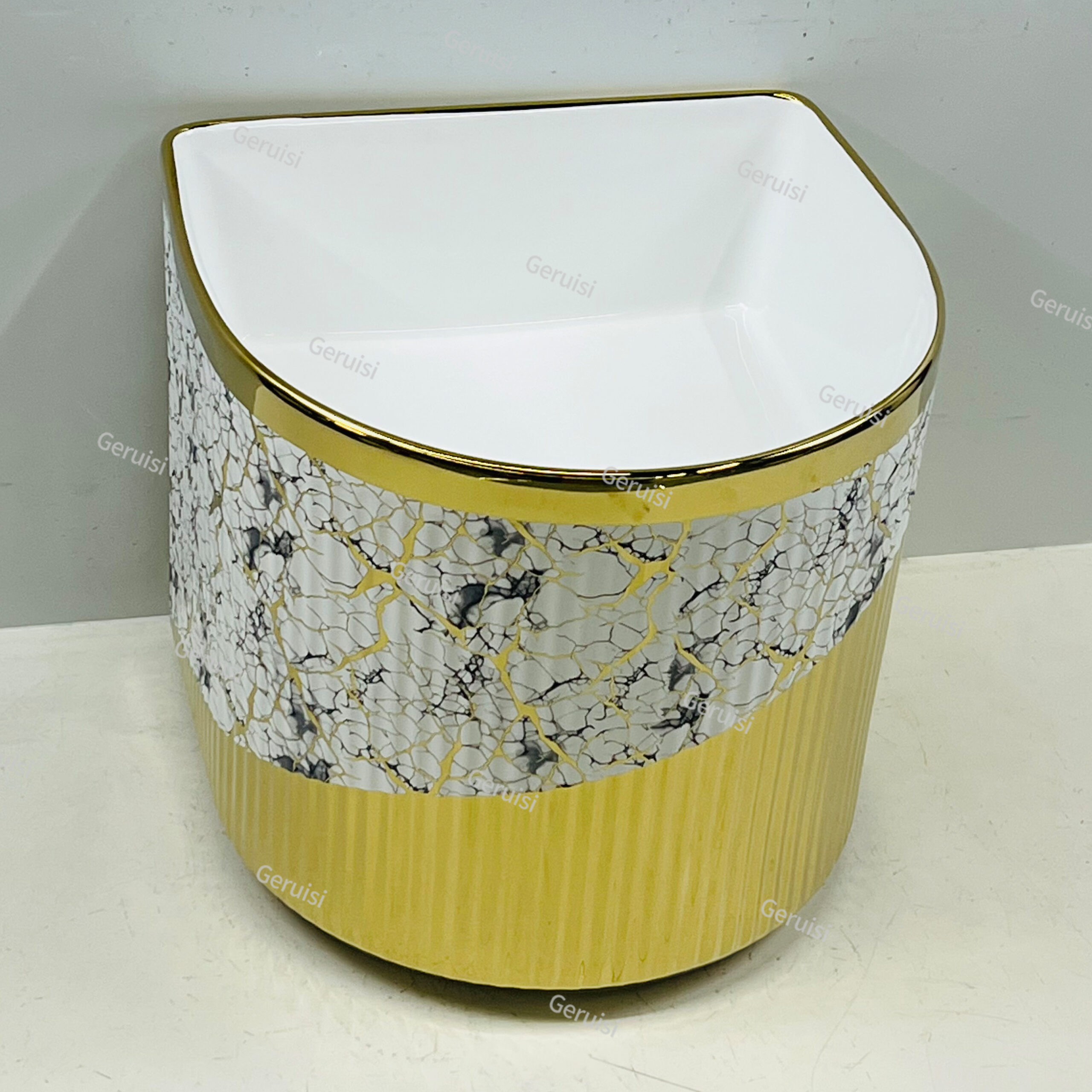 New design from Chaozhou factory porcelain table top arch shape fluted ceramic sink luxury golden marble washbasin