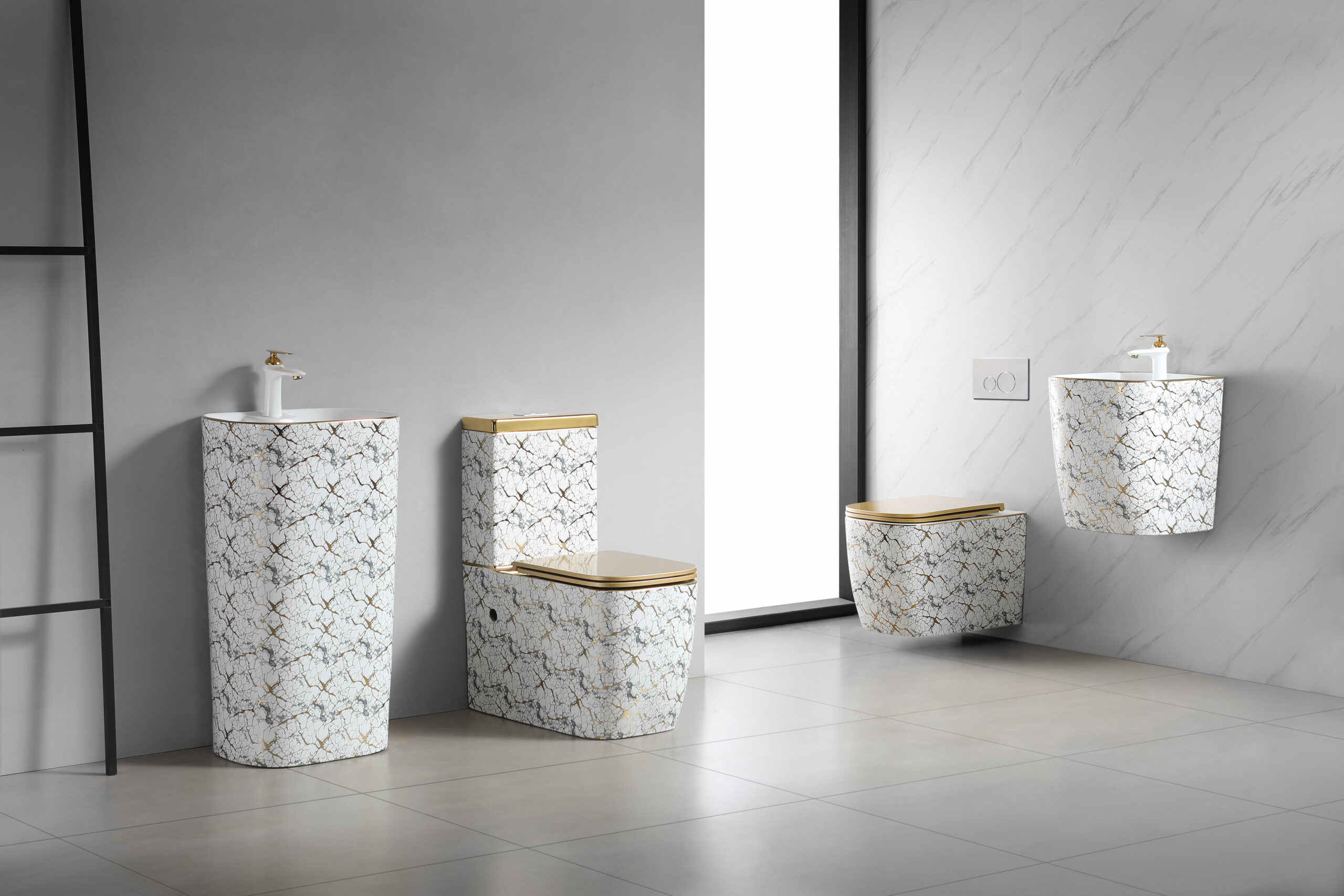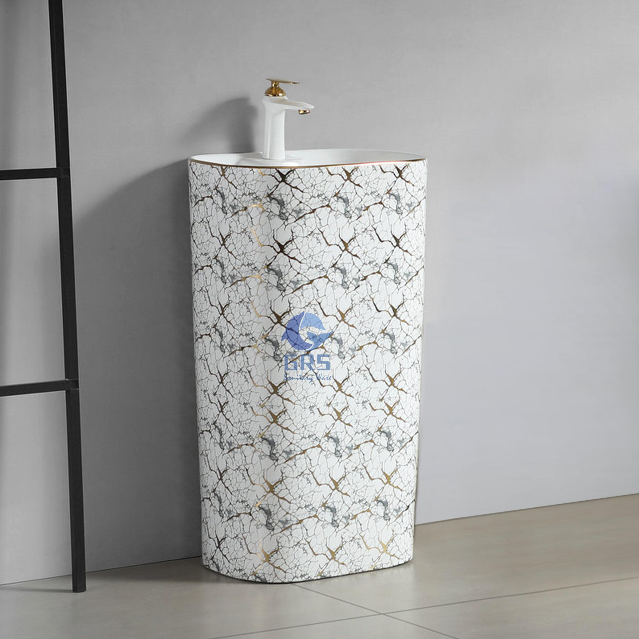 New Market Trend Marble Design Ceramic Sanitary Wares Combo Floor Mounted One Piece Basin Pedeatral Sinks Bathroom Washbasin