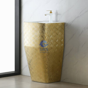 Golden Pattern Design Sanitary Inodoros Unit Electroplating Gold Integrated Floor Standing Washbasin Bathroom Single Sinks