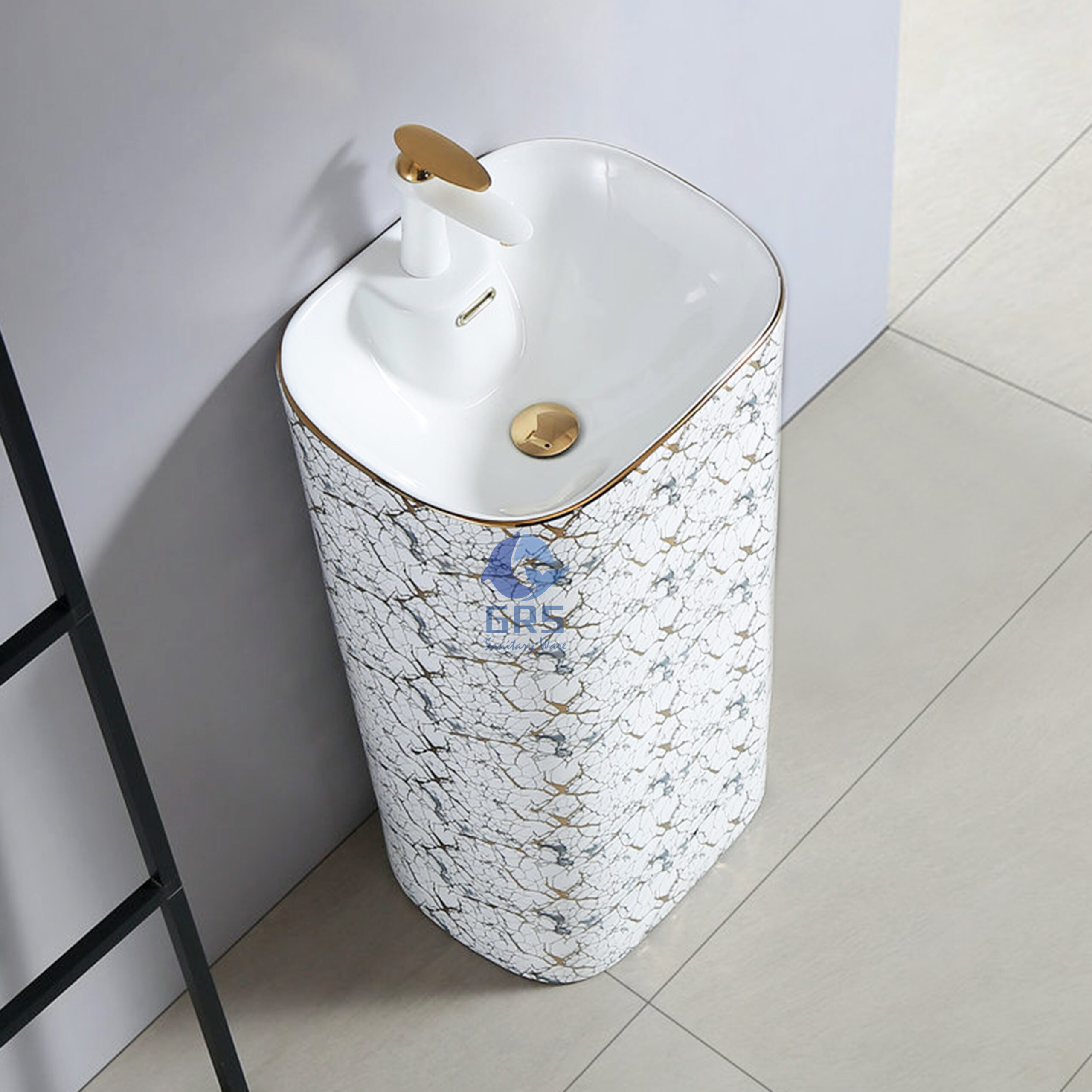 Floor mounted Art basin Electroplate Pedestal basin sink Colorful Ceramic bathroom hand wash basin sink for hotel use