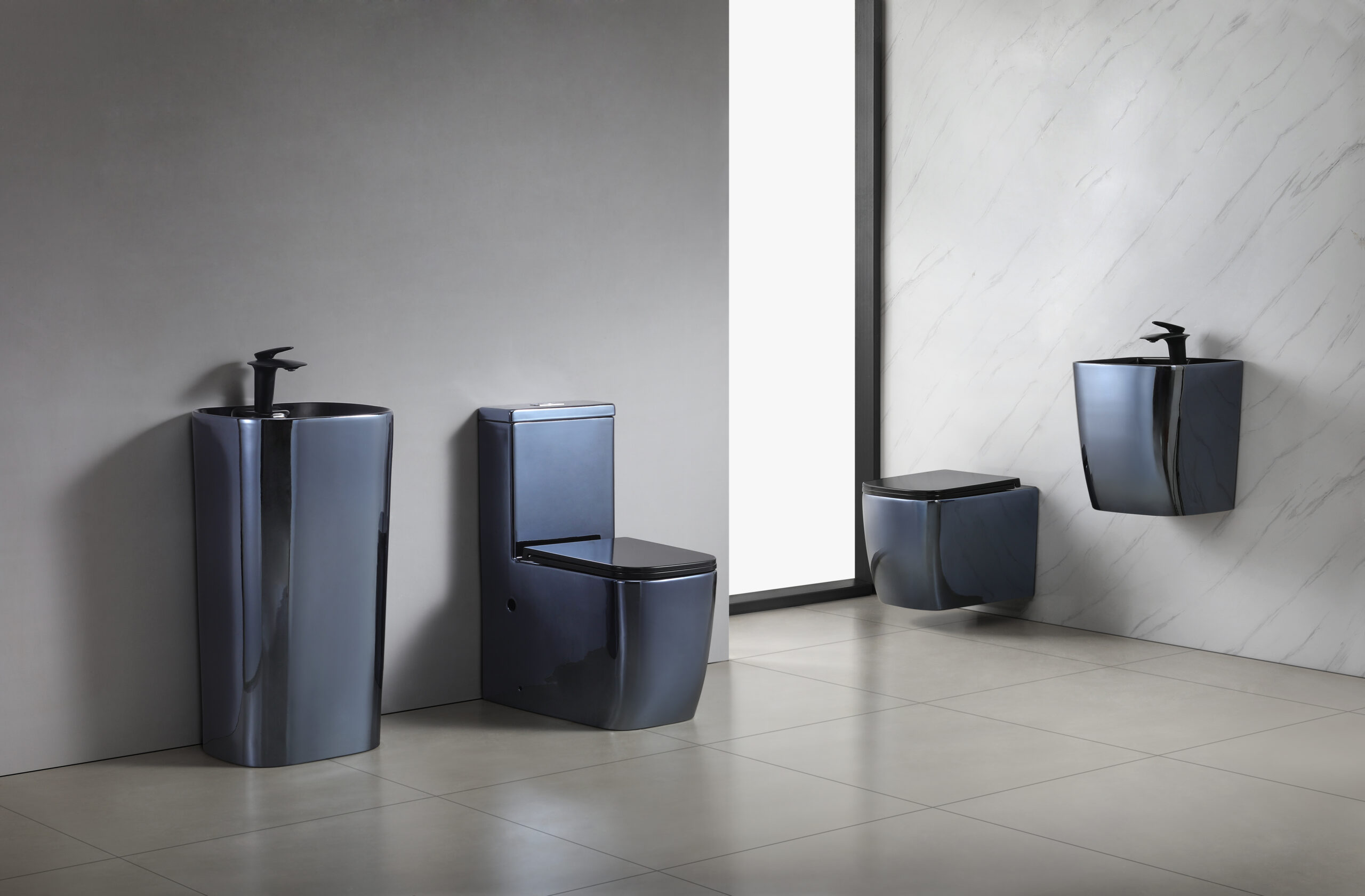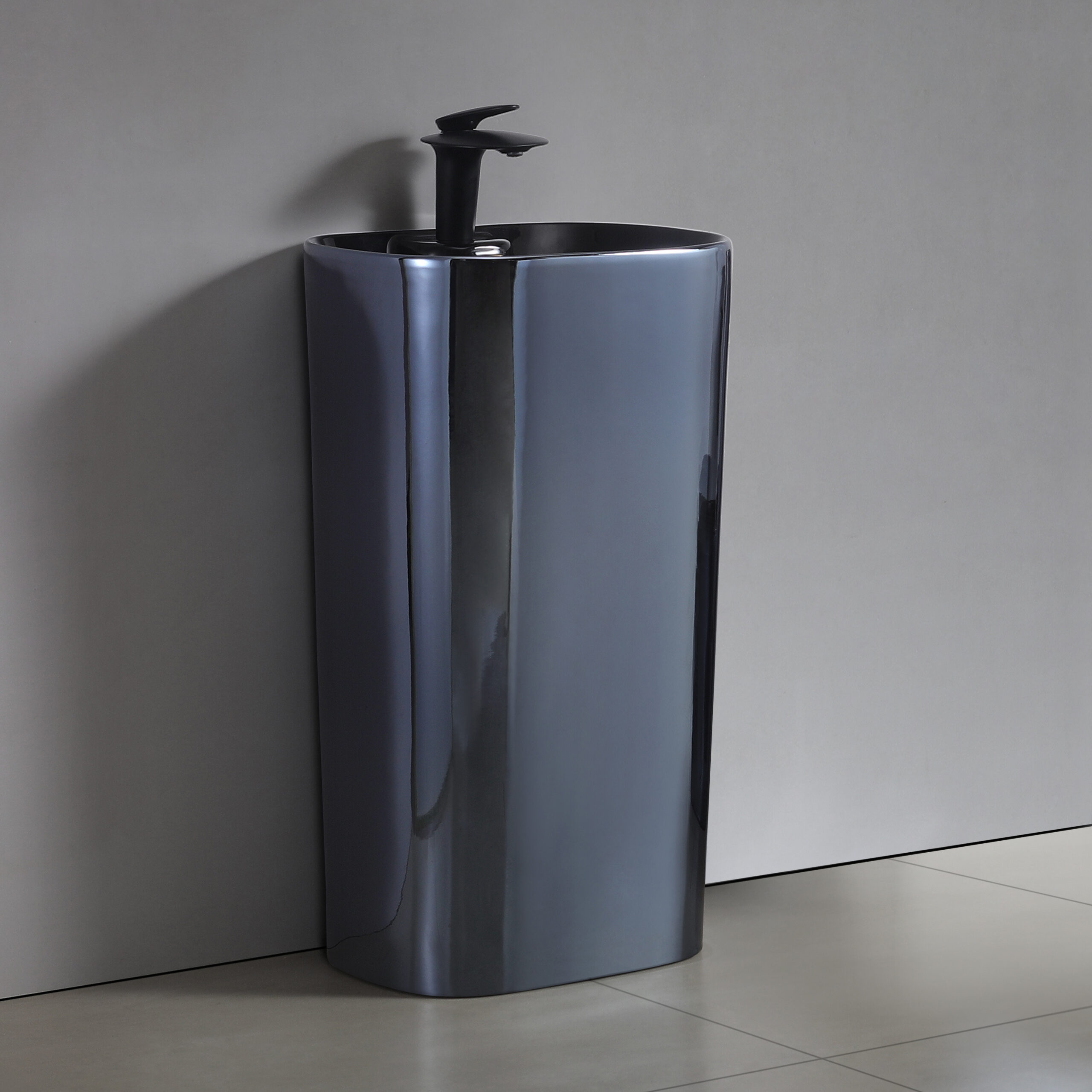 Shinning Blue Ceramic Sanitary Wares Combo Floor Mounted One Piece Basin Pedeatral Sinks Bathroom Washbasin for Home Hotel