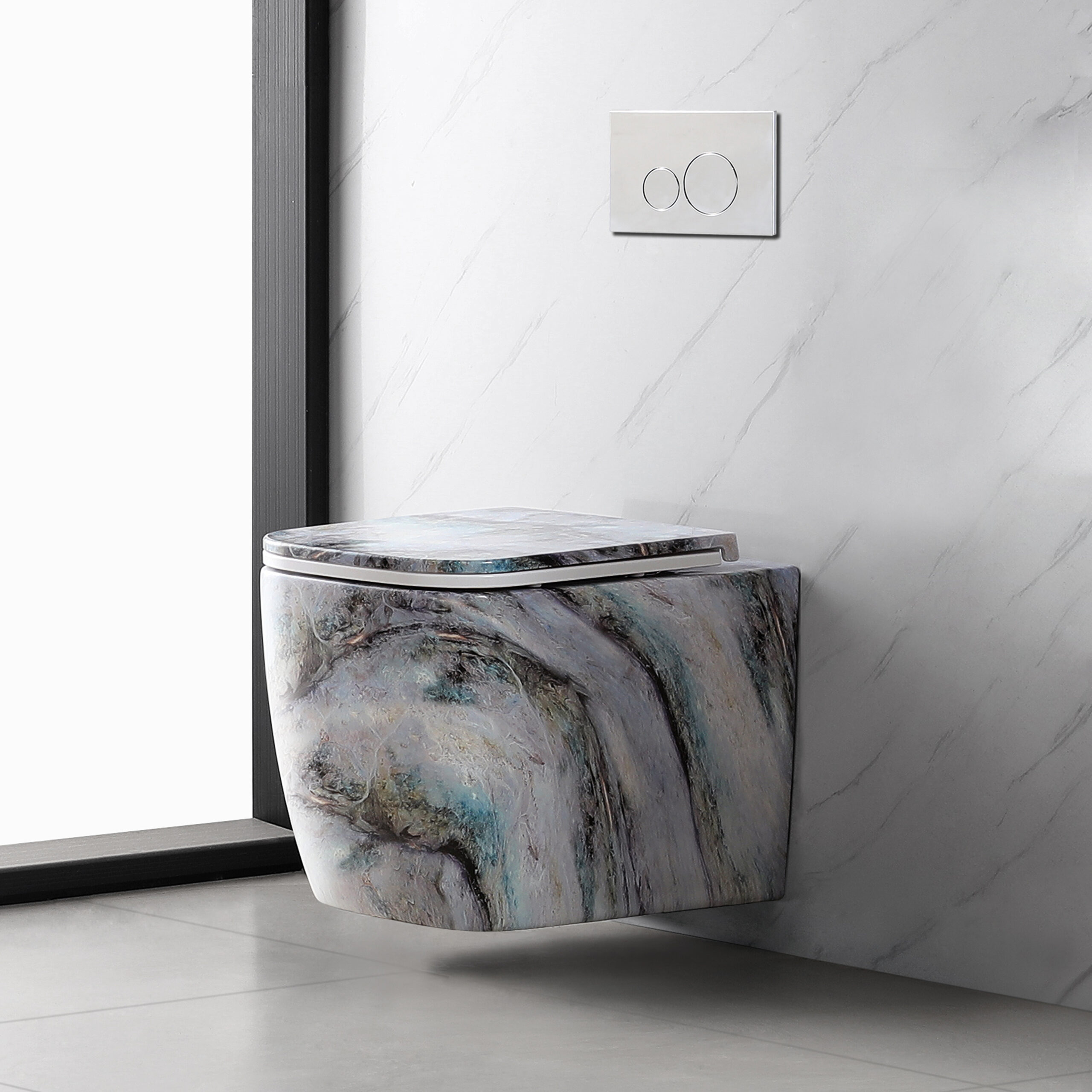 Traditional Chinese Water-ink Painting Ceramic Commode Wc Wall Hung Toilet Bowl Bathroom Toilets Lavatories Combo for High End Hotel