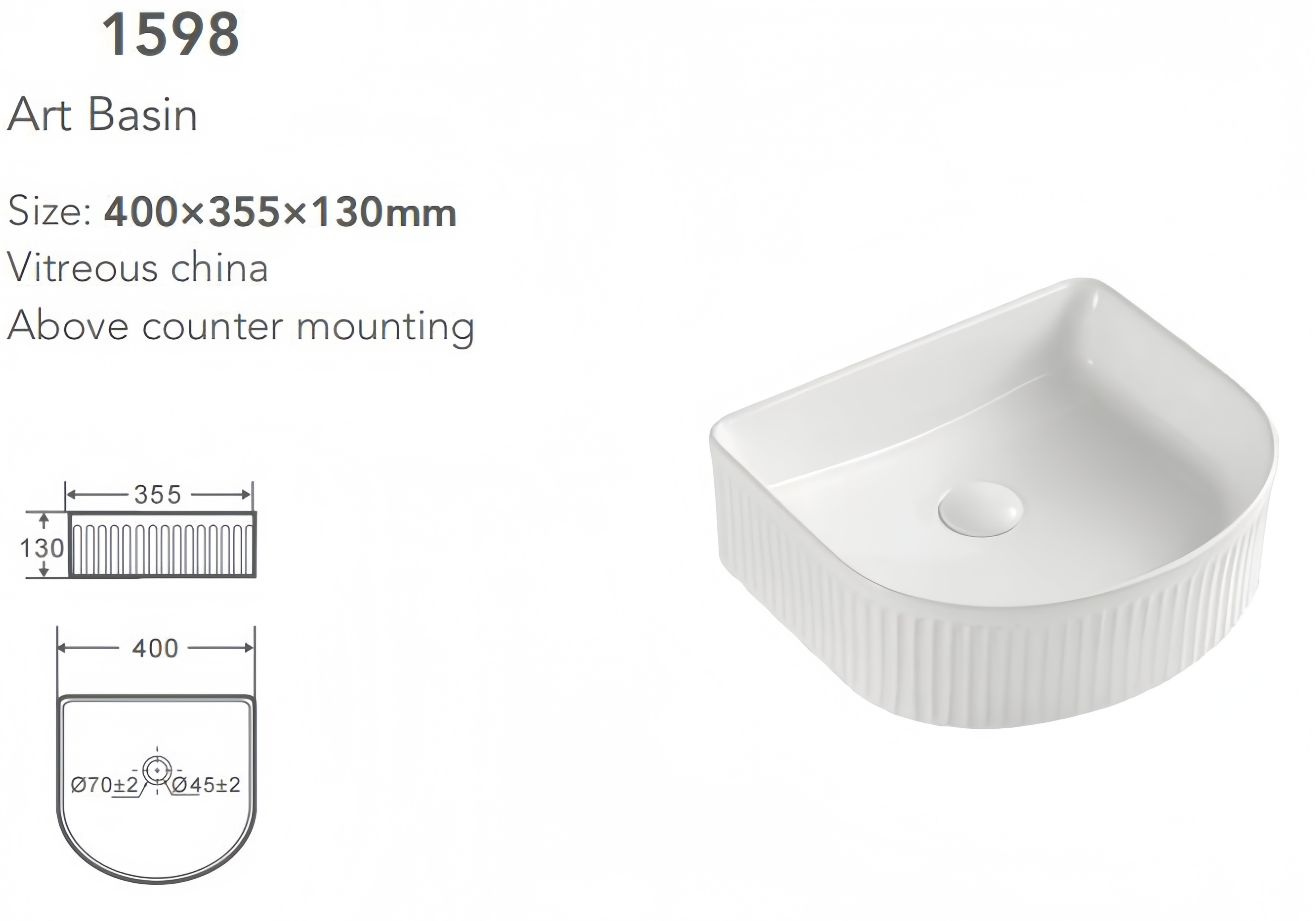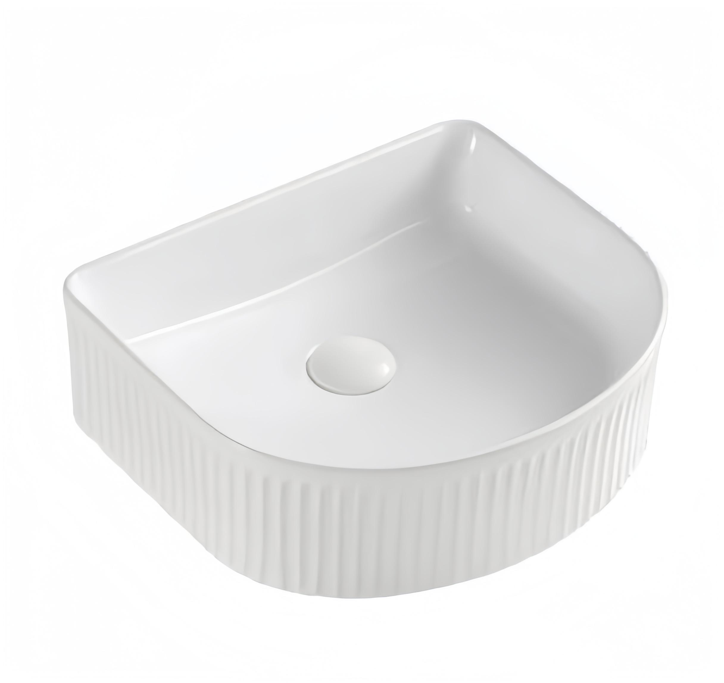 Unique Grooves Fluted Half Oval Basin Bathroom Basin Bowls Sinks Table Top Wash Hand Porcelain Basin Bathroom Sink