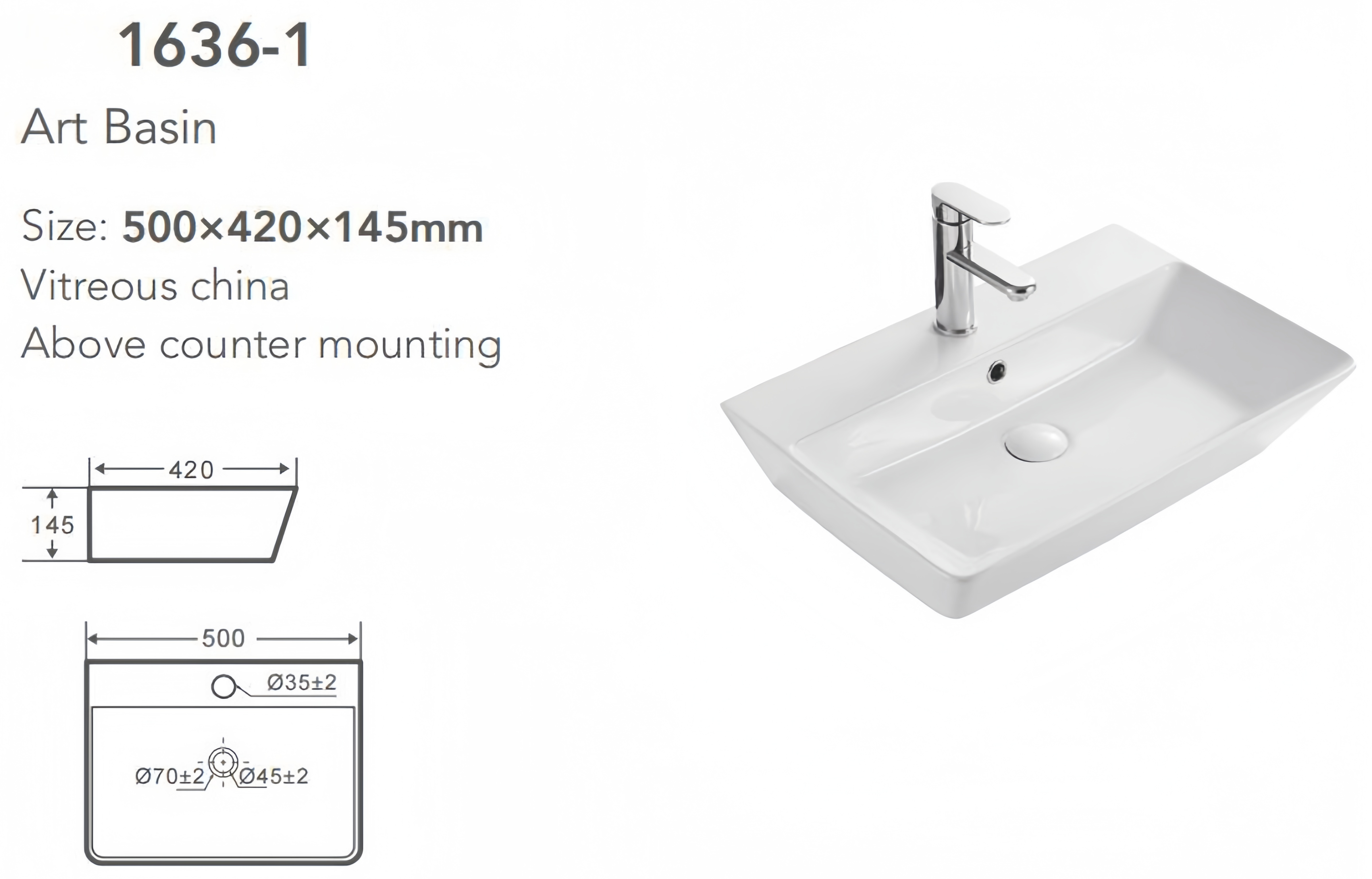 Modern hot sell ceramic sanitary ware table counter top rectangular bathroom sink art hand wash basin