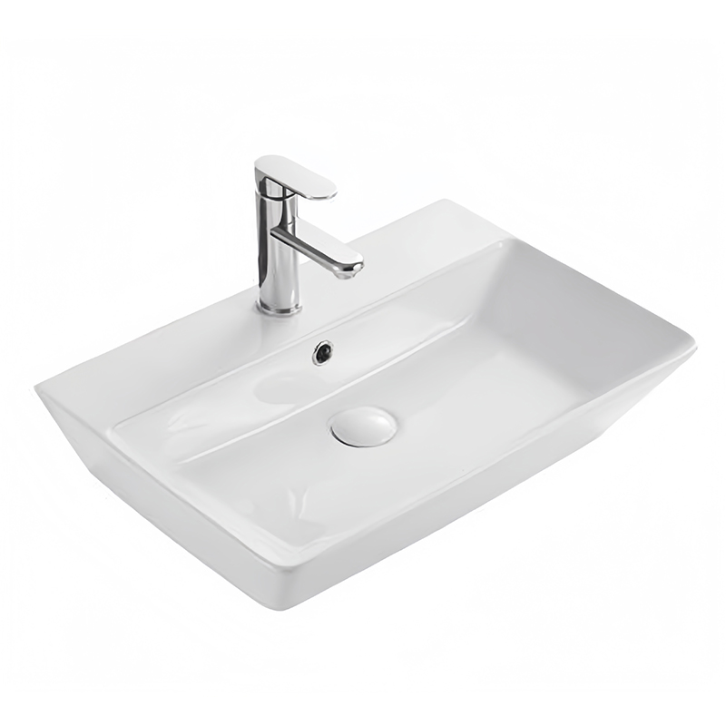 Hot sale European table top side drain ceramic rectangular wash basin white bathroom sink