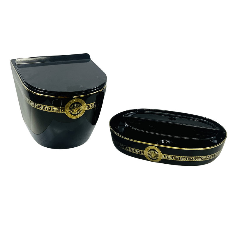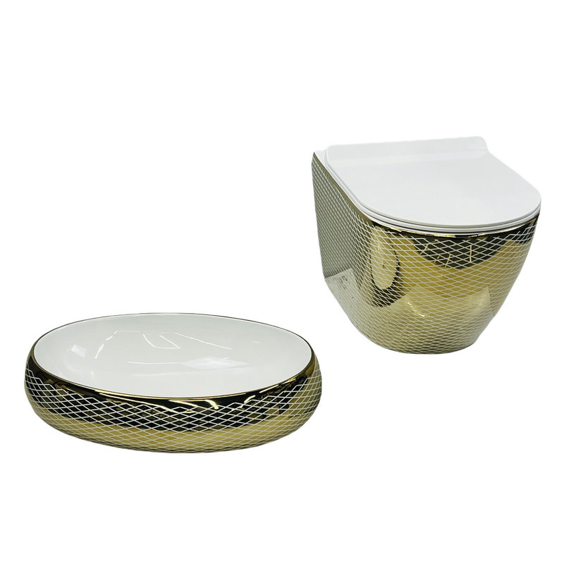 Wall hung toilet bowl high quality electroplating golden color customization toilet and sink suite